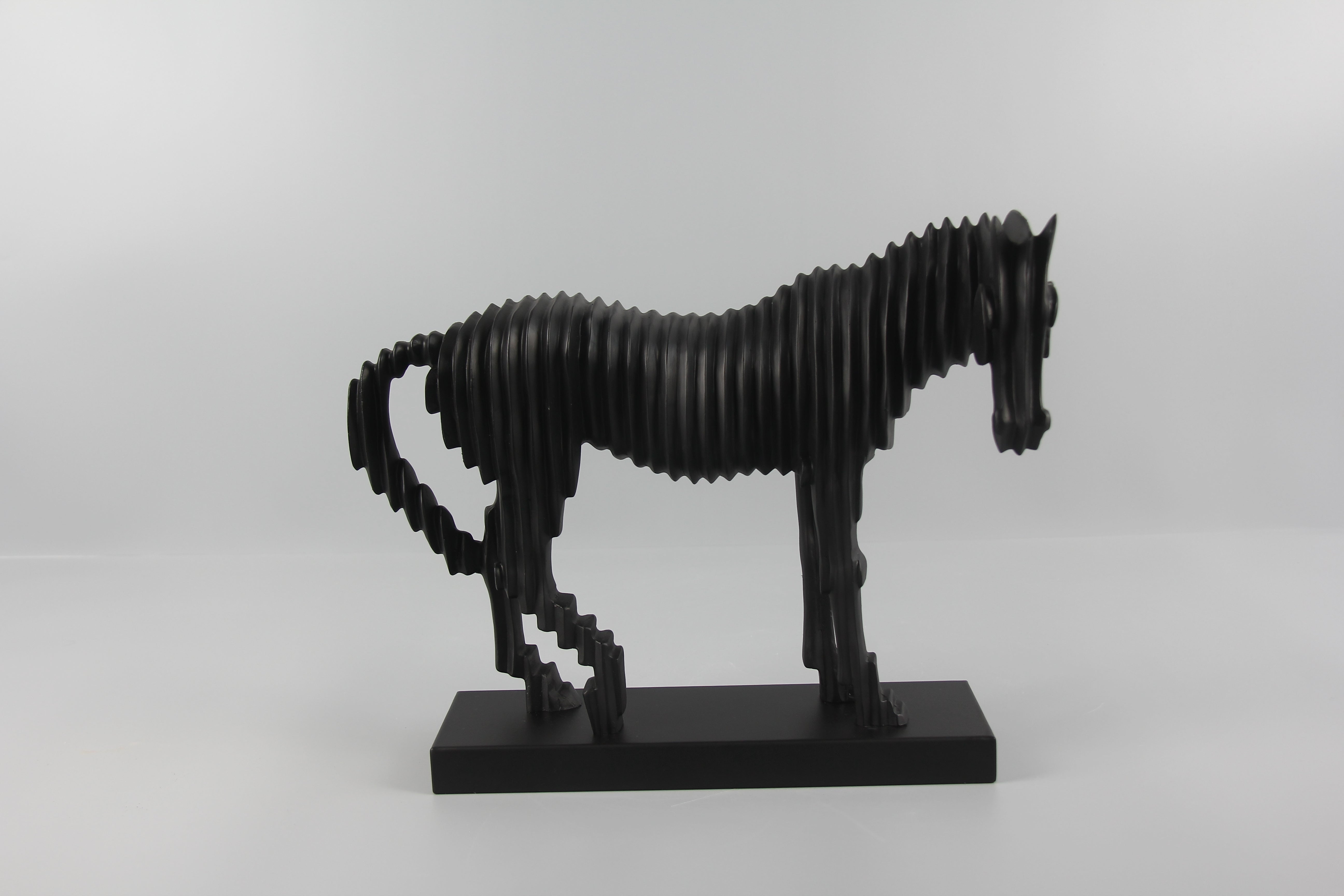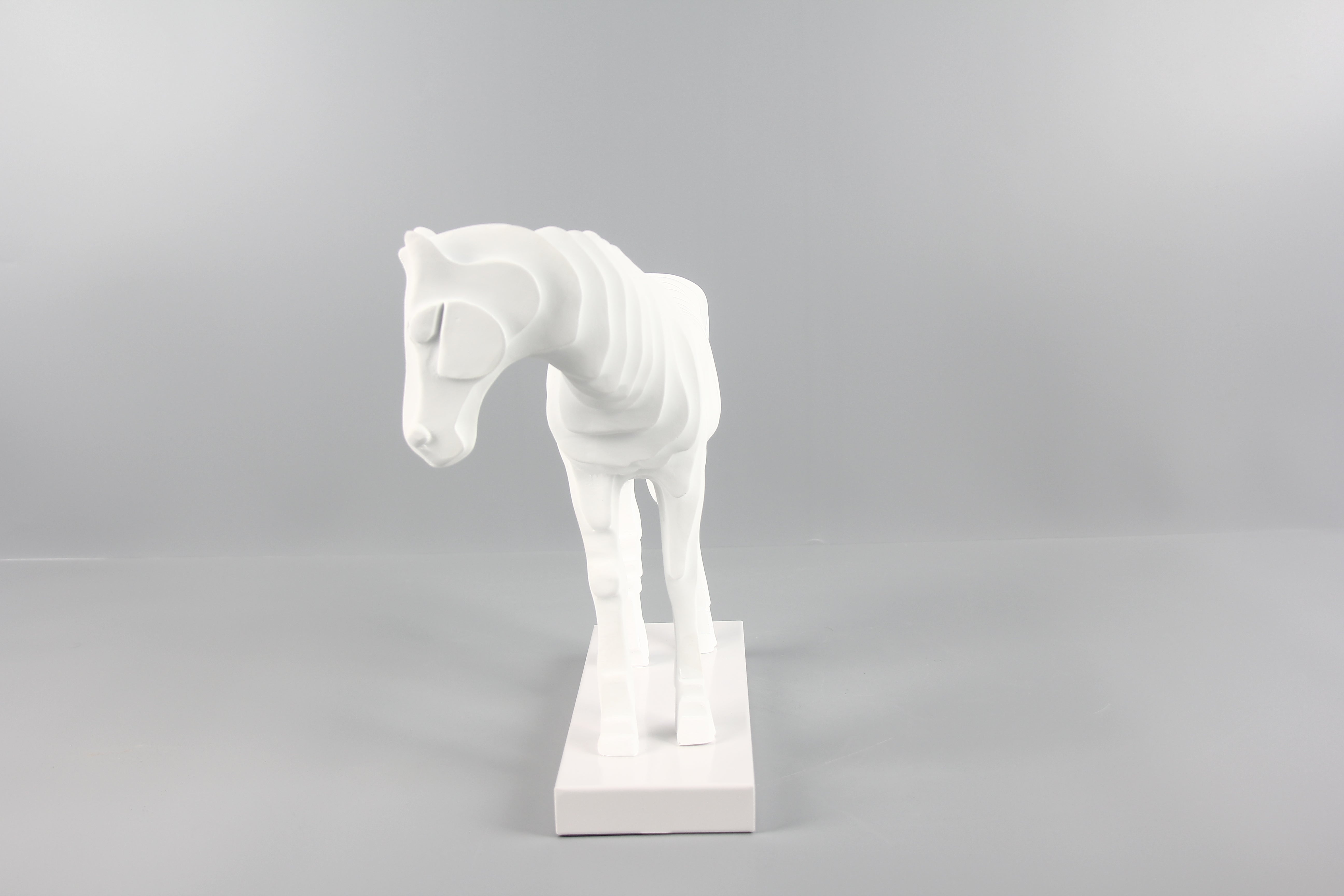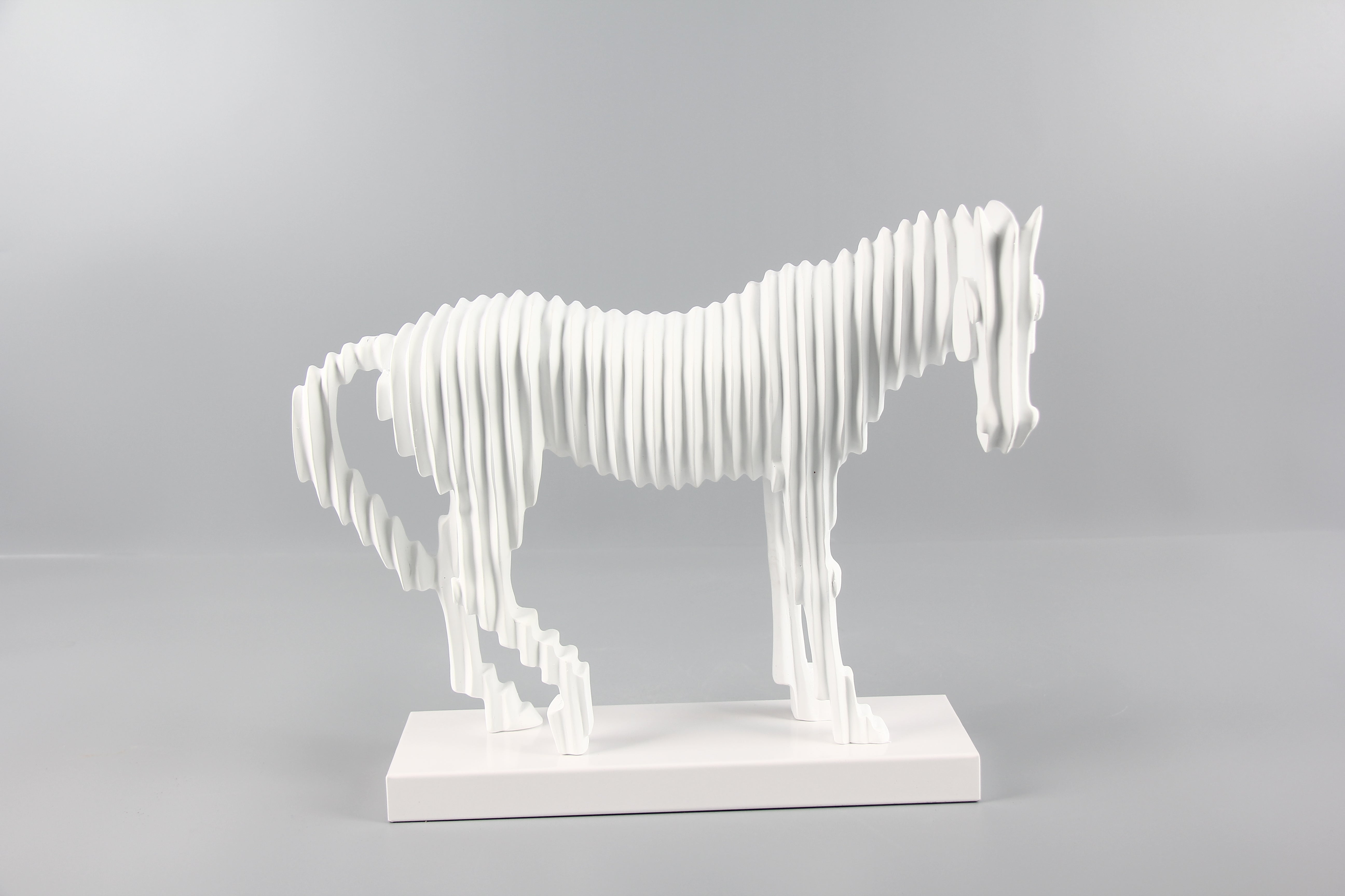 The Abstract Bella Horse Figurine is a modern decorative sculpture featuring a sleek and stylized depiction of a horse. The figurine is primarily in white and black, with clean lines and smooth contours that emphasise the elegance and grace of the horse. The combination of white and black colours adds a striking contrast, enhancing the artistic appeal of the piece.The abstract design simplifies the animal's form, focusing on its flowing movement and majestic posture.